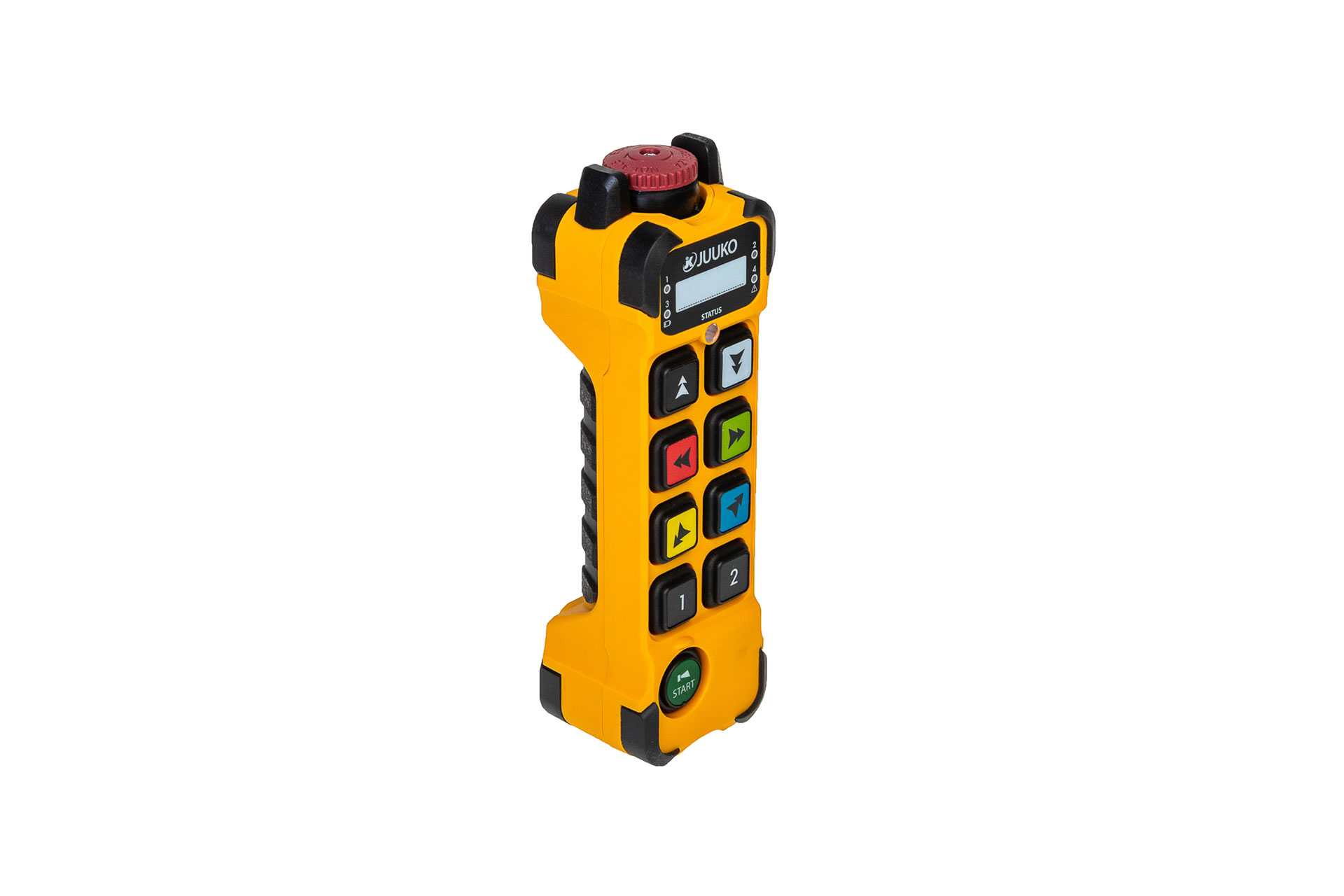 Juuko kumanda gövdesi, acil stop butonu ile bir bütün olarak tasarlanmıştır. PA(%30GF) plastik malzeme ile üretilen gövde ve acil stop butonu birbirinin ayrılmaz parçası olup, güvenlik bariyerleriyle desteklenmektedir. Bu bariyerler butonun her iki yanında bulunan 4mm kalınlığında çelik saplamalardan oluşmaktadır ve darbelere karşı kauçuk kaplamayla desteklenmiştir. Bu da Acil Stop Butonunun, benzersiz şekilde darbelere karşı daha dayanıklı olmasını ve ürünün yaşam süresinin uzatılmasını sağlar.
